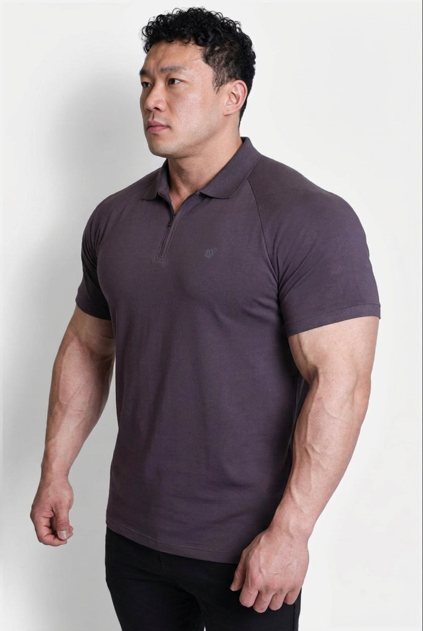 Premium Muscle-Fit Polo Tee w/ Zipper - Dark Gray
